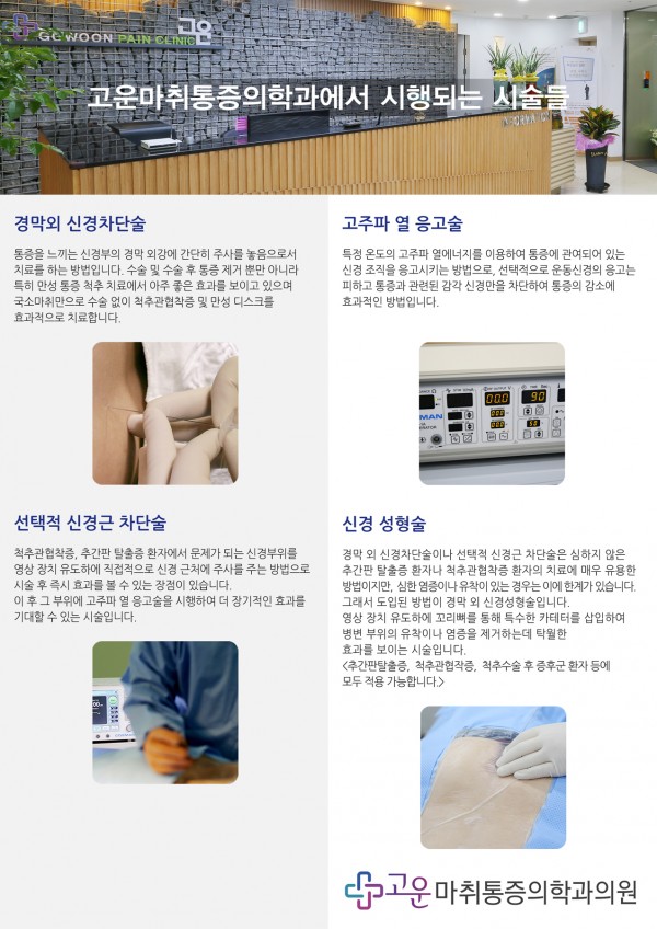 고운마취통증의학과에서 이루어지는 시술 페이지 정보 작성자 고운통증의학과 작성일16-01-13 16:22 조회2,356회 댓글0건 다음글 목록 본문 . 댓글목록 등록된 댓글이 없습니다. 다음글 목록